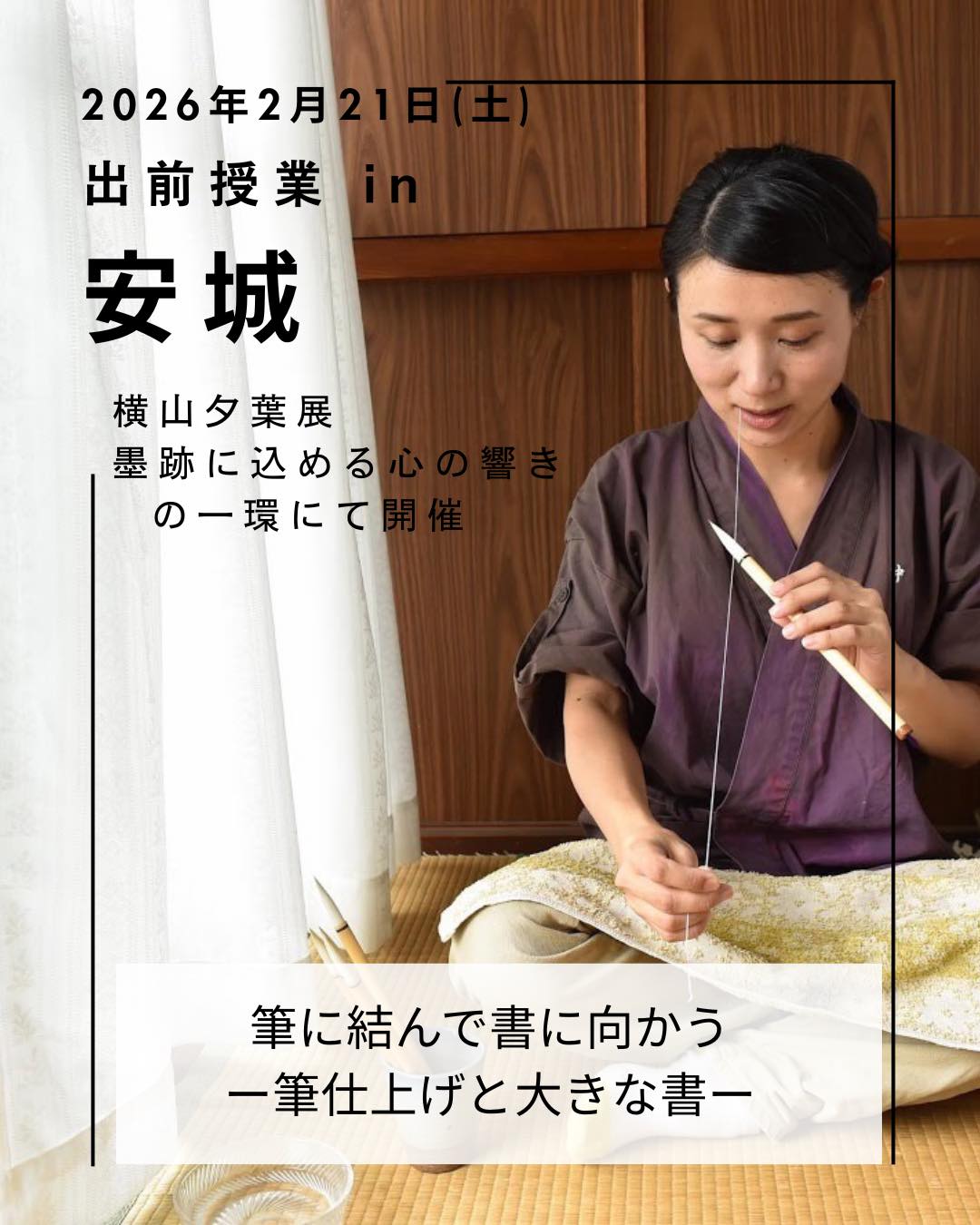長きにわたり安城市の書文化を支えてきた横山夕葉先生の書の数々の展示会の一環でワークショップをさせて頂きます。
